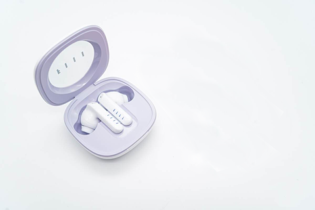 FIIL Key Pro真無線降噪耳機的充電盒采用了類似于“餅狀化妝盒”的設計,表面采用鋼琴烤漆工藝處理,質感光滑圓潤;充電倉盒蓋還采用了開窗設計,可清晰看到充電倉內部,確認耳機情況;耳機則采用了常見的柄狀入耳式設計,配備烤漆工藝,質感親膚舒適;耳機柄末端還擁有紫色“FIIL”品牌LOGO。